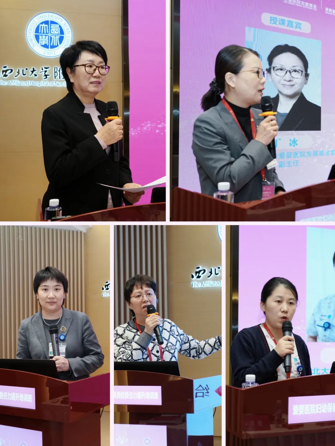 ▲授课专家:陕西省人民医院总护士长兼产科护士长杨春荣,西北大学附属安琪儿妇产医院新生儿科主任李和勤,西安市第四医院产科护士长张维娜,西北大学附属安琪儿妇产医院产房护士长张婵、产科护士长张莹