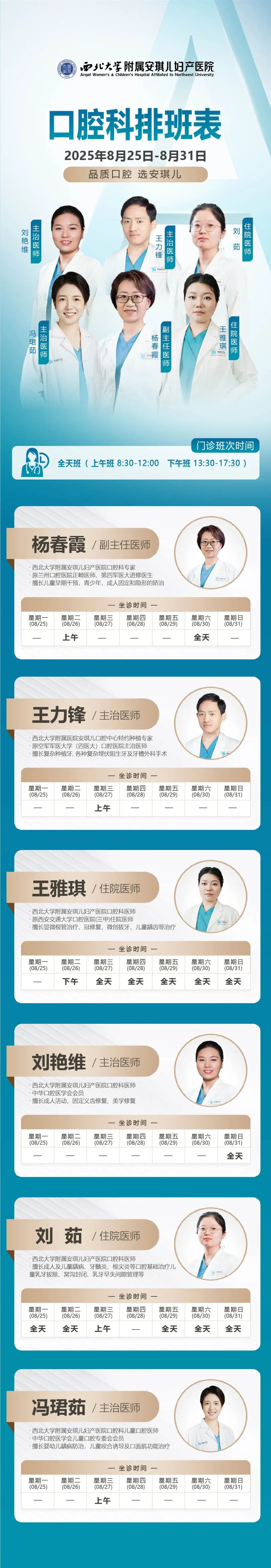 西安安琪儿妇产医院(8月25日至8月31日)专家坐诊时间表