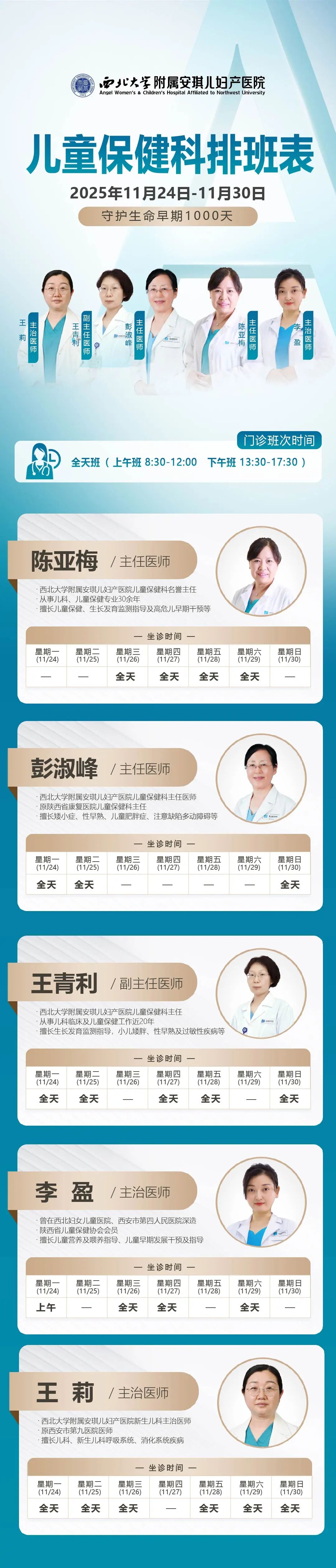 西安安琪儿妇产医院(11月24日至11月30日)专家坐诊时间表