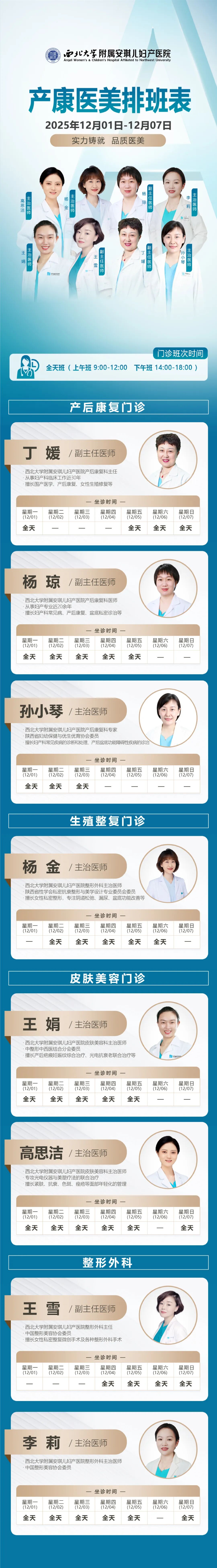 西安安琪儿妇产医院(12月8日至12月14日)专家坐诊时间表