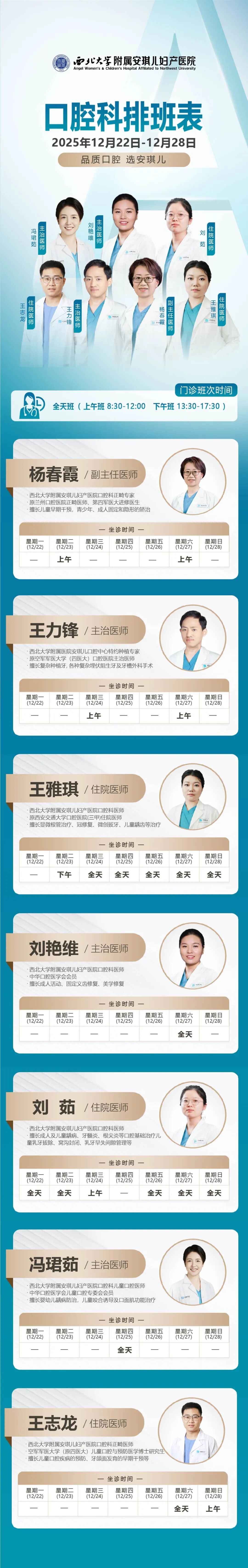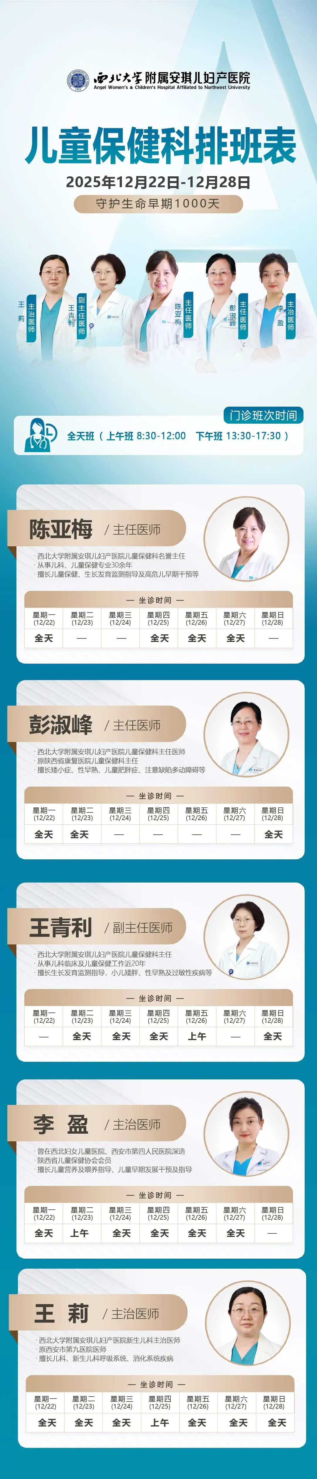 西安安琪儿妇产医院(12月22日至12月28日)专家坐诊时间表